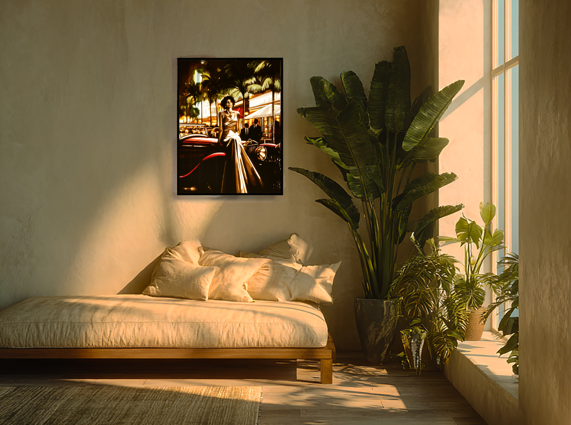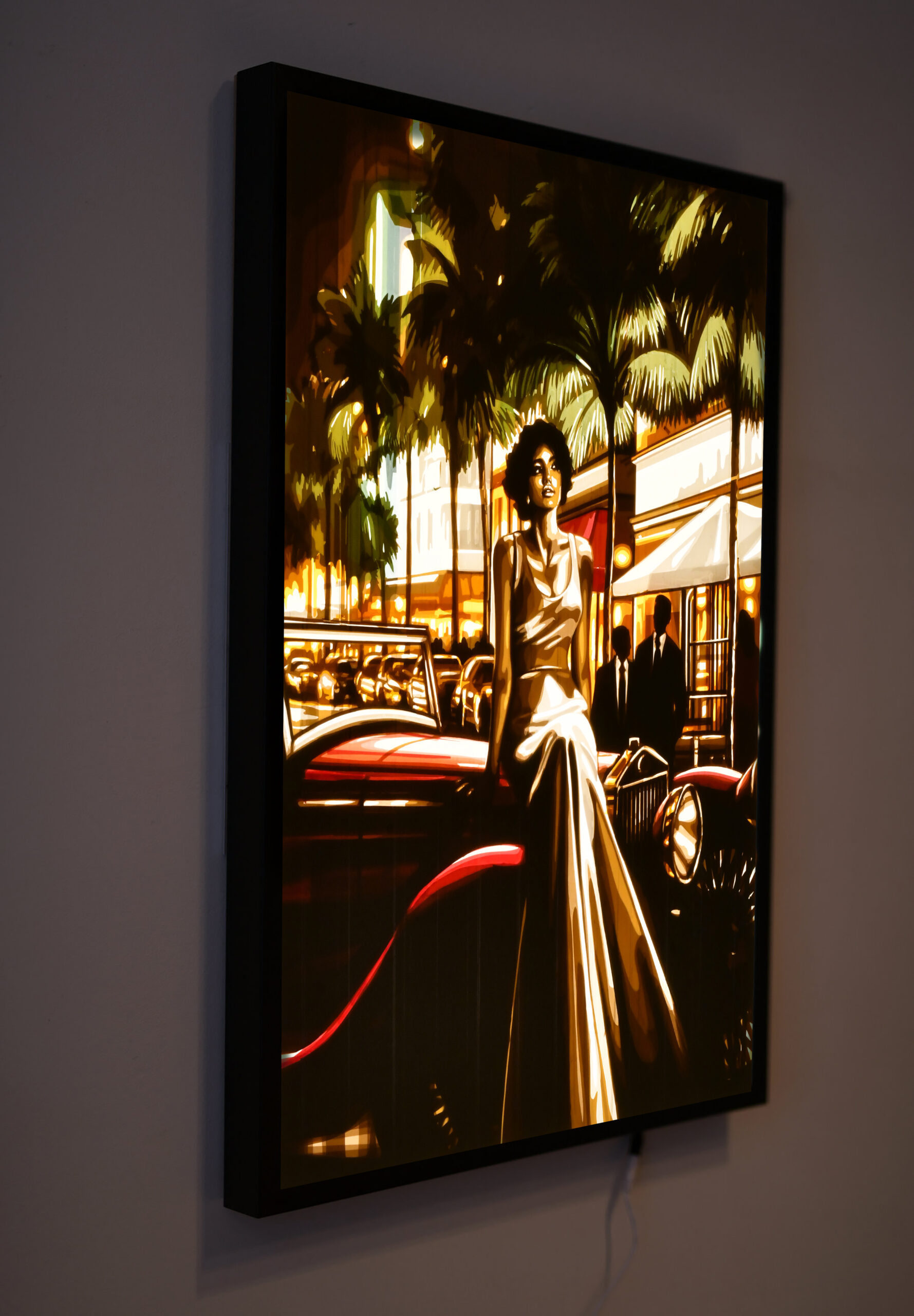 Frame: framed in dark frames , included with LED-lights, ready to hang