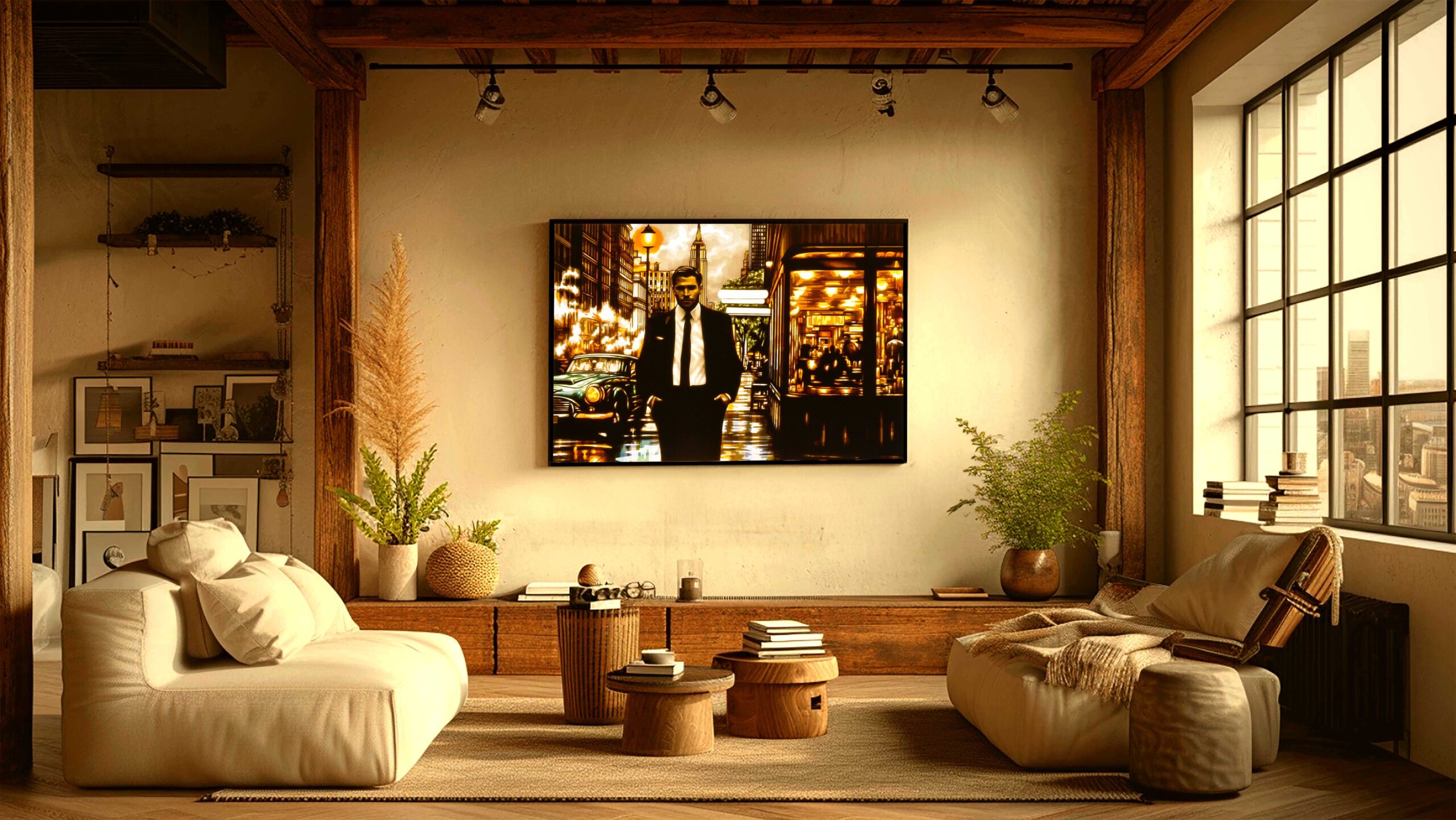 Frame: framed in dark frames , included with LED-lights, ready to hang
